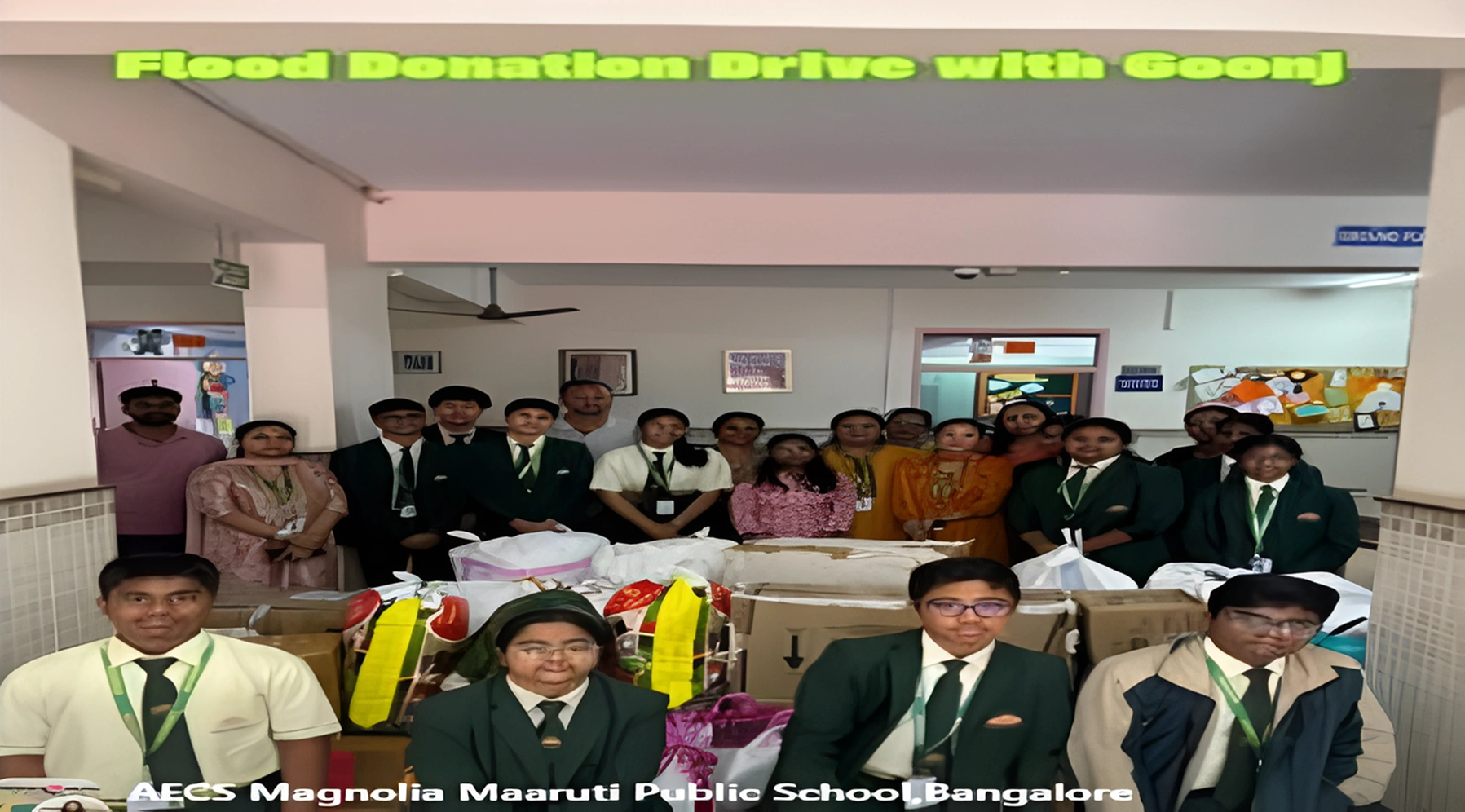 This year, in collaboration with GOONJ, we successfully organized a donation drive to support communities affected by floods, thanks to the generous contributions of our parents, students, and staffs. On 11th September 2025, essential relief items were handed over, turning collective compassion into meaningful action.