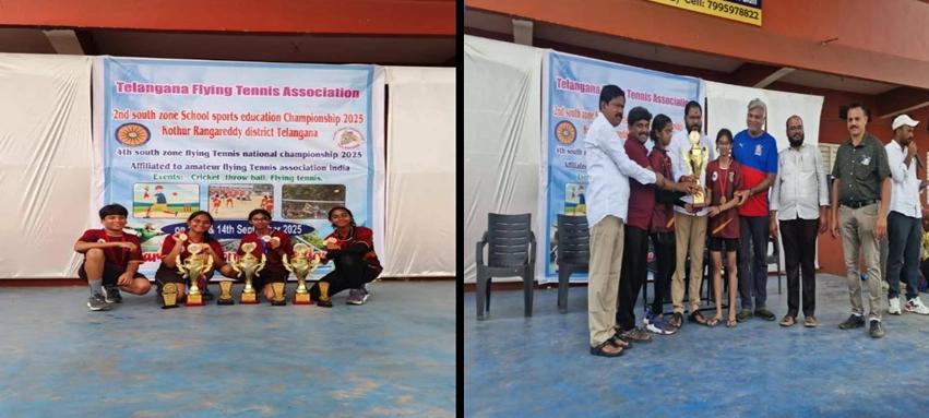 AECS Magnolia Maaruti Public School proudly celebrates the success of five students who represented Team Karnataka at the 4th South Zone Flying Tennis National Championship held on 13–14 September 2025 in Telangana. G. Aditya Reddy (Grade VIII) secured 1st place in Boys’ Sub-Junior Singles, while B.R. Sanjeev (Grade VIII) achieved 3rd place. In the Girls’ Sub-Junior Singles, A. Monathanigaa (Grade VIII) won 1st place and Tapasya Rodagi (Grade VIII) secured 2nd place. The doubles events saw Aditya & Sanjeev crowned Boys’ Sub-Junior Doubles Champions, and Monathanigaa & Tapasya as Girls’ Sub-Junior Doubles Champions. Adding further glory, Kushi P. Naik (Grade IX) won 1st place in Girls’ Junior Doubles. Their remarkable achievements stand as a proud testament to Magnolia’s sporting spirit and excellence.