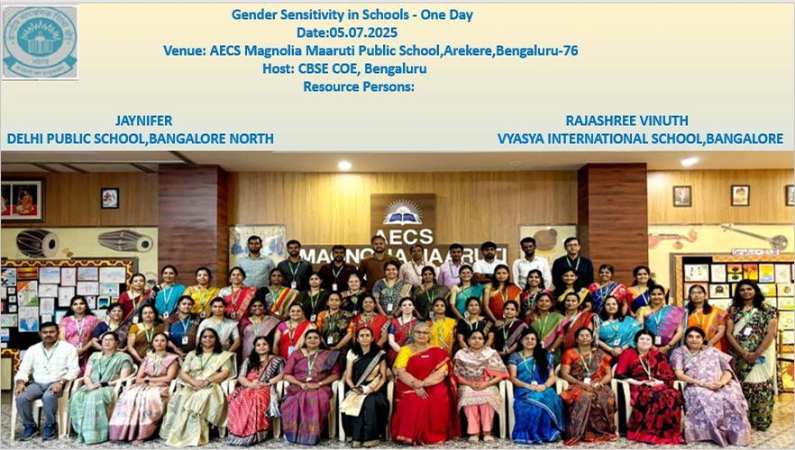 AECS Magnolia Maaruti Public School was privileged to host the CBSE Capacity Building Programme on Gender Sensitivity in Schools on 5th July 2025. The enriching session was led by two inspiring resource persons — Ms. Jaynifer, an accomplished Special Educator at Delhi Public School, Bangalore, and Ms. Rajashree Vinuth, the dynamic Principal of Vyasa International School.